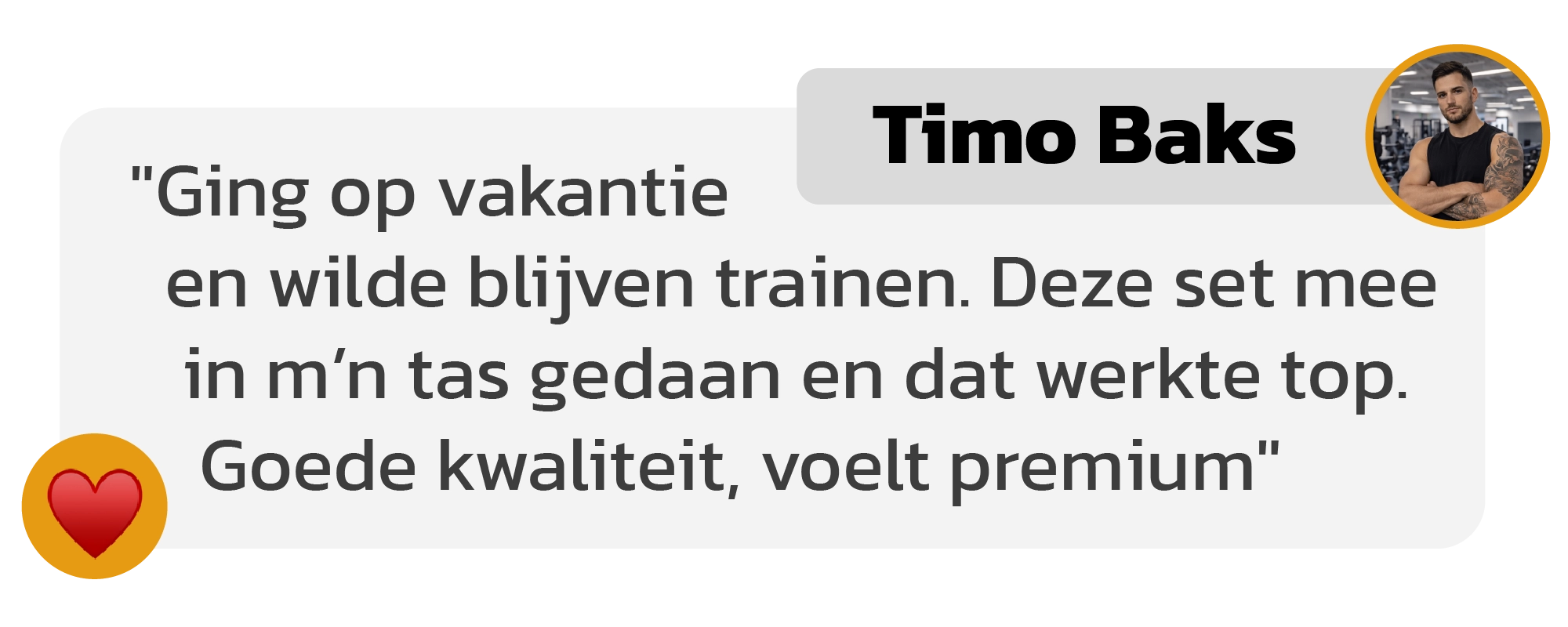 Geen gym? Geen probleem. Train door, waar je ook bent. Thuis, de gym of op vakantie. Laat je progressie niet stilvallen. Bestel jouw weerstandsbanden nu!