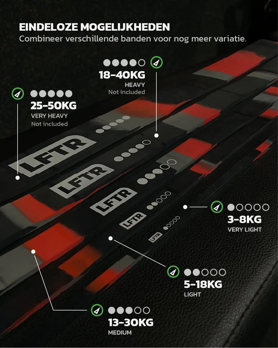 Een echte gymrat weet: weerstand door de hele range of motion betekent meer kracht en meer gains. Met LFTR Powerbands voeg je progressieve weerstand toe aan je training en zorg je voor spanning van start tot finish, zodat de hele rep telt.